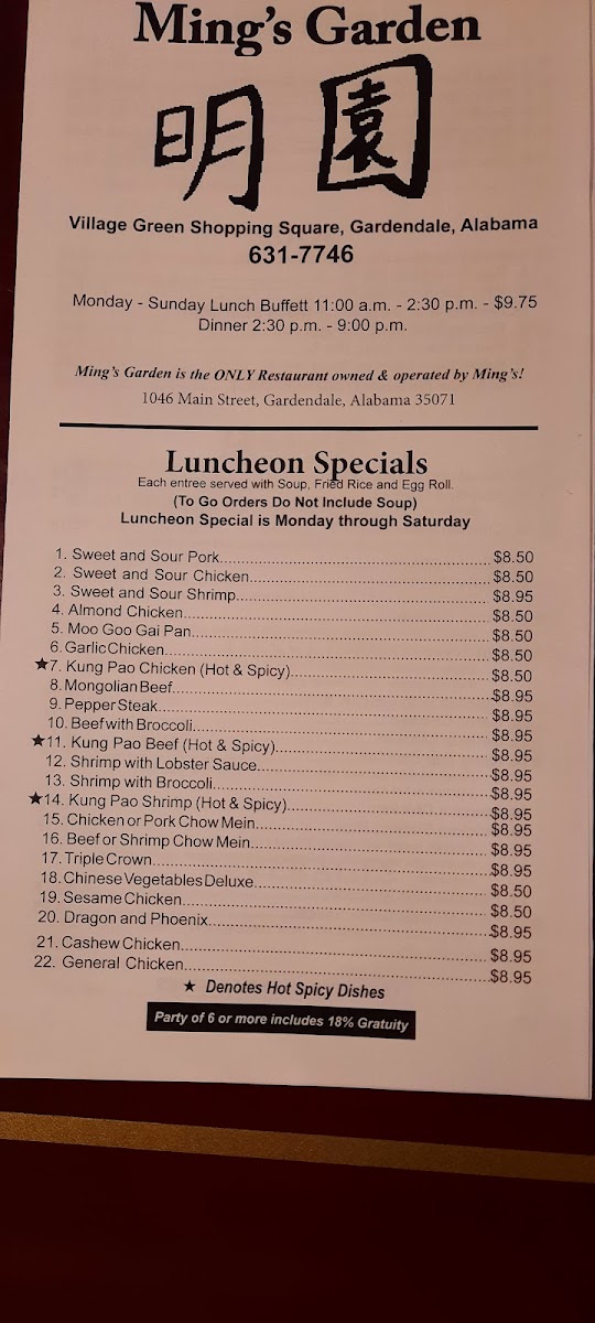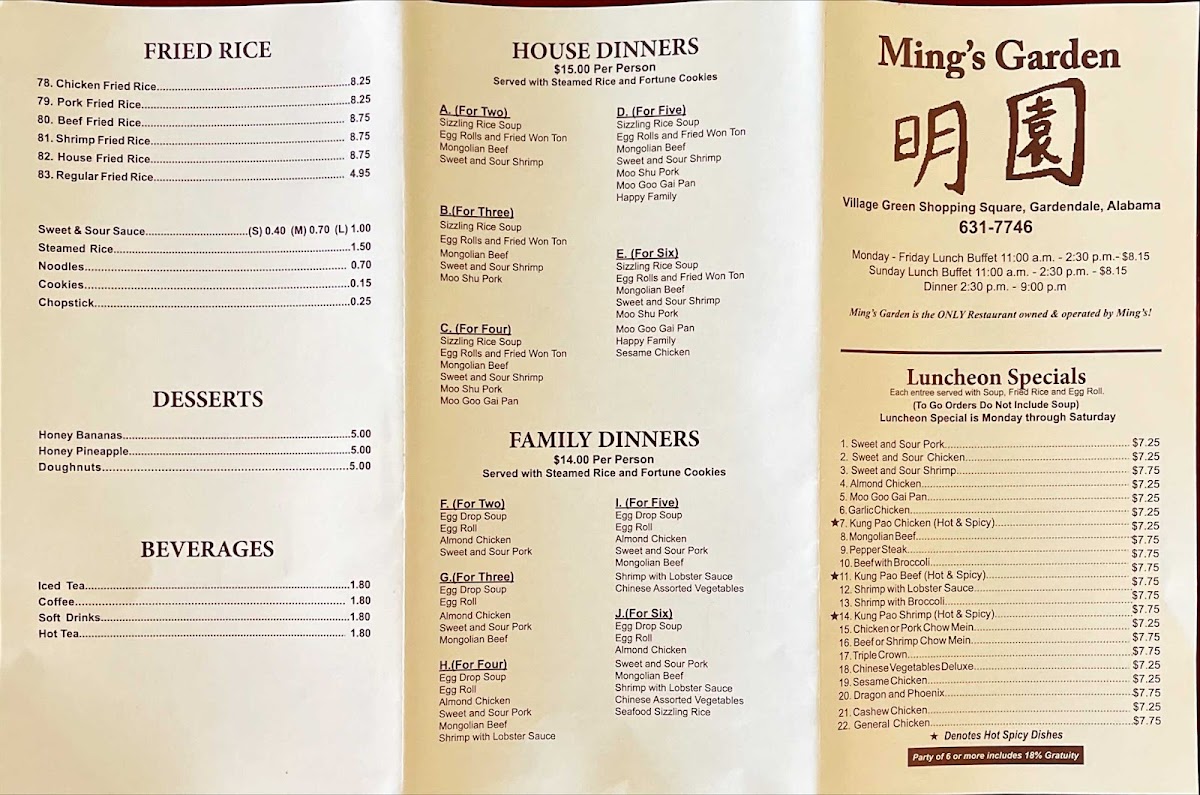 In conclusion, Ming's Garden provides a well-rounded and flavorful dining experience that caters to both individual cravings and group meals. With its wide array of options at reasonable prices, it's a great spot to enjoy Chinese cuisine with family and friends.